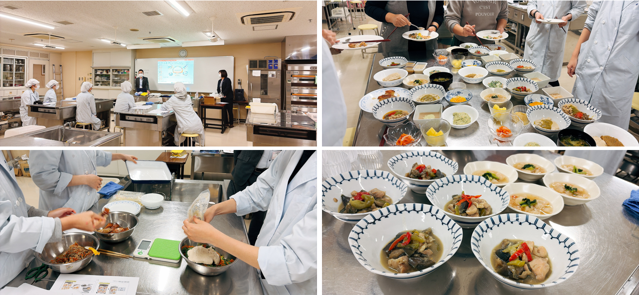 日清医療食品株式会社(代表取締役社長:立林 勝美/以下、日清医療食品)は、東京都江戸川区にある愛国学園短期大学において、栄養士を目指す学生支援のための実習に参画しました。日清医療食品の病院・介護施設用食事サービス「モバイルプラス※1」および「シン・食事サービス※2」を応用栄養学実習Ⅱの授業において活用いただきました。