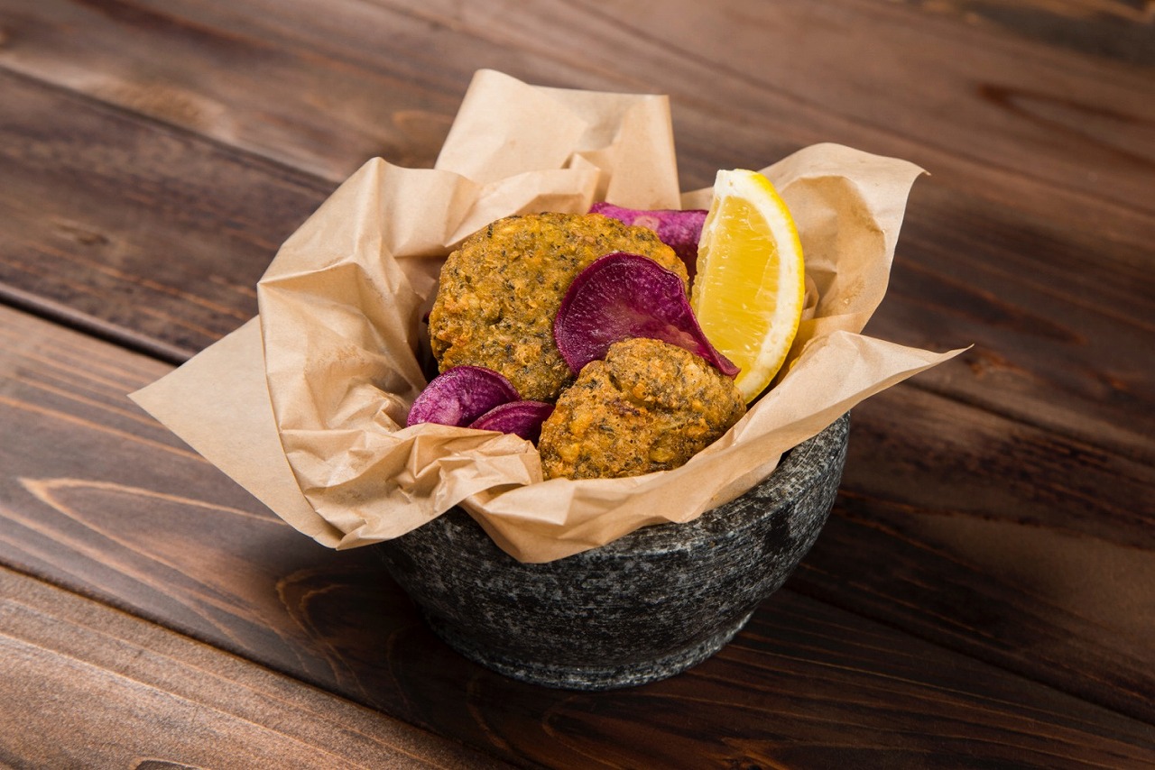 ファラフェル 850円(税別)スパイスをきかせたひよこ豆のコロッケ。 |