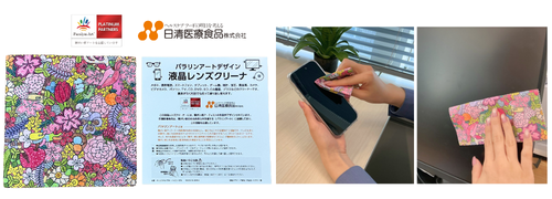 日清医療食品は、障がい者アーティストのの経済的な自立を目的とし、彼らのビジネス支援を行う「パラリンアート」に協賛しており、この活動を応援しています。今回、液晶レンズクリーナーの表面デザインに同アートを起用いたしました。この液晶レンズクリーナーは、メガネ、スマートフォン、パソコンなどに使用できます。表裏がなく何回でも洗って繰り返し使えます。