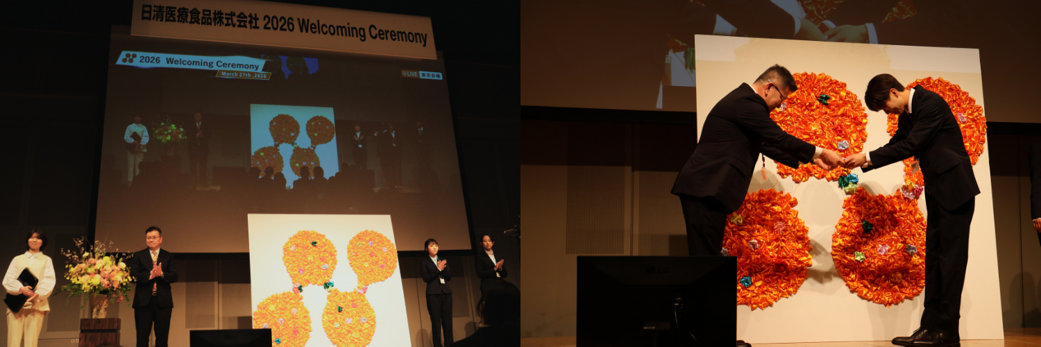 日清医療食品株式会社(代表取締役社長:立林 勝美/以下、日清医療食品)は、2026年3月27日(金)に入社式「Welcoming Ceremony」を開催しました。会社全体の一体感を作り出すため、全国各地14会場をつなぐ同時開催を行い、779名を迎え入れました。