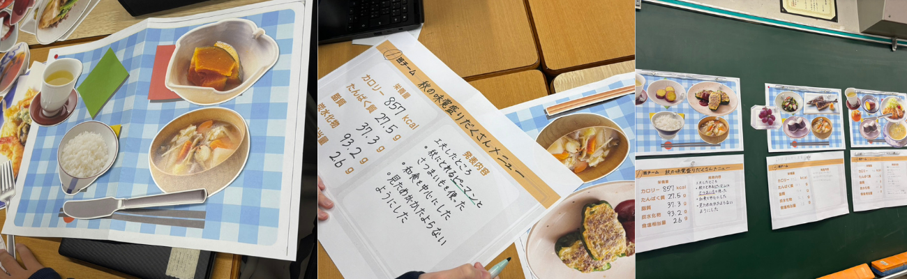 真剣な表情で栄養計算をする生徒、メニューの組み合わせに頭を悩ませる生徒、アイデアを出し合う姿が教室中に広がりました。
