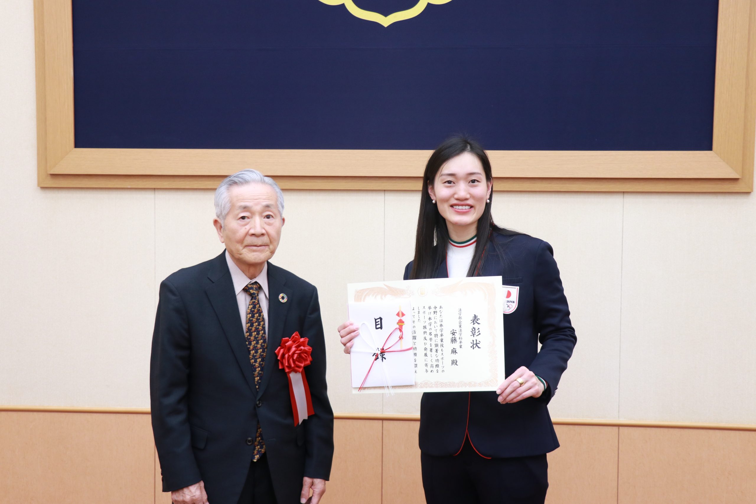 表彰式では「現役生活に一区切りをつけ、今後新たな歩みに向けて、さらに精進していきたい」と力強く語りました。